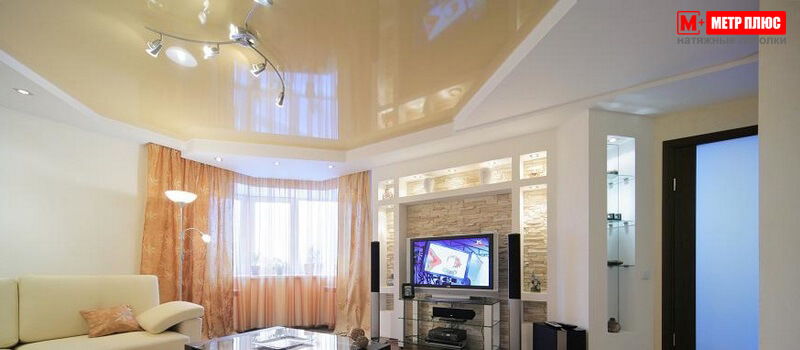 При установке натяжного полотна можно грамотно разместить встроенные светильники, которые будут подсвечивать определённую зону, тем самым экономя энергию на ненужной подсветке всего помещения. Все линии коммуникаций, проводки будут спрятаны за натяжным полотном. Так же это отличная возможность скрыть неровность родного потолка. Можно улучшить звукоизоляционные свойства помещения, расположив звукоизолирующую прокладку за потолком.